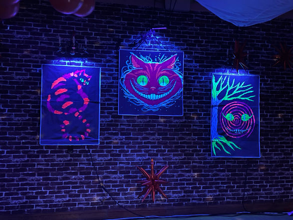 Black-Lit Cheshire Cats 30"W x 40"L, 36"W x 36"L & 30"W x 48"L